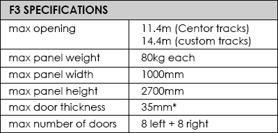 Centor’s new F3 system means folding doors can generally be installed without structural modifications made to the opening, and are now suitable and cost-effective even for small-scale renovations and do-it-yourself projects. This is because the Centor F3 is a bottom-rolling folding system that transfers the door weight from the top of the opening to the bottom, so there is no need for a strong overhead structural beam. The Centor F3 expands market opportunities for door manufacturers, builders and specifiers.
